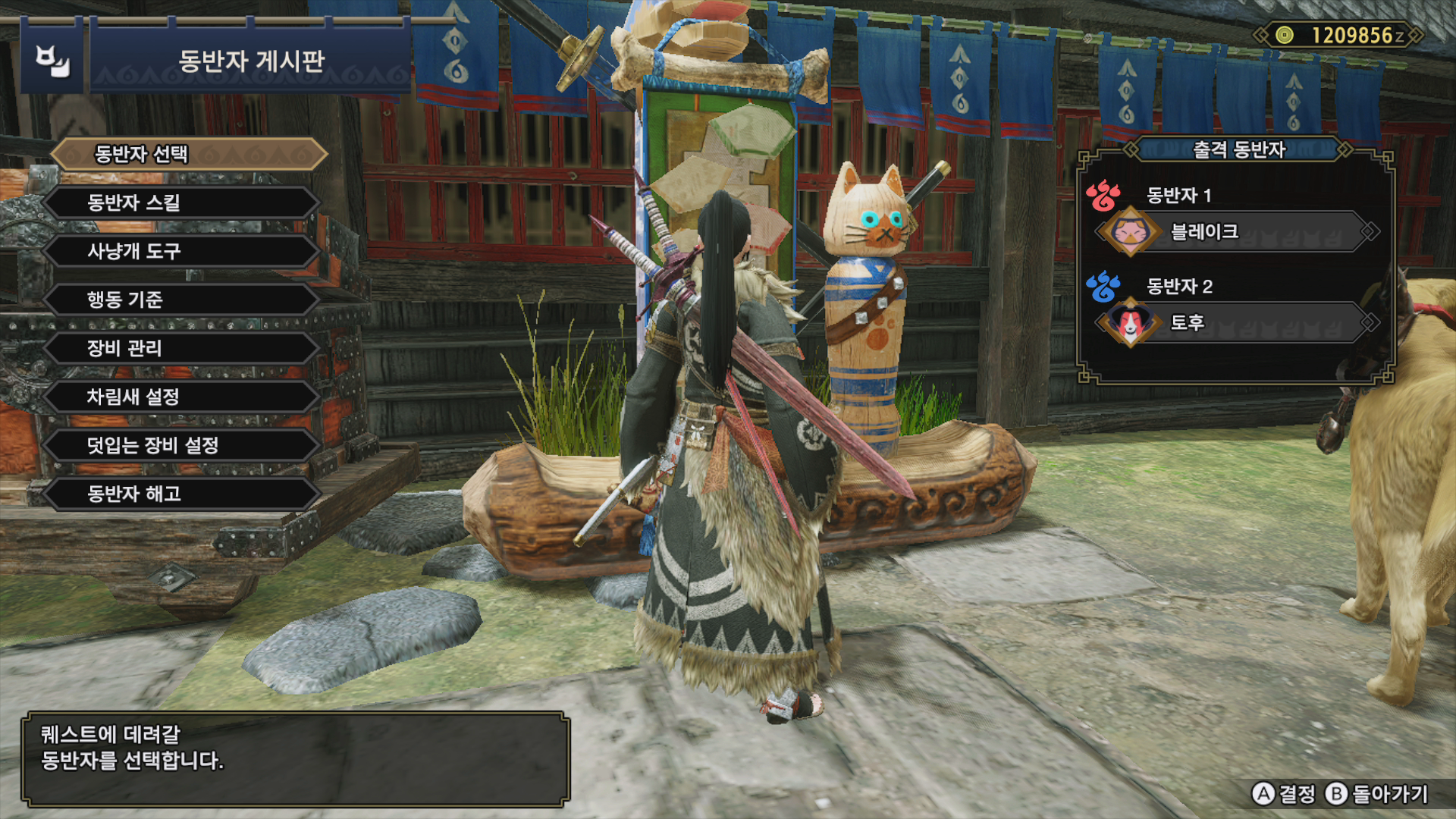여러 플레이어와 함께 퀘스트를 하는 경우 동반자 아이루와 동반자 가루크 중 하나를 선택할 수 있습니다
