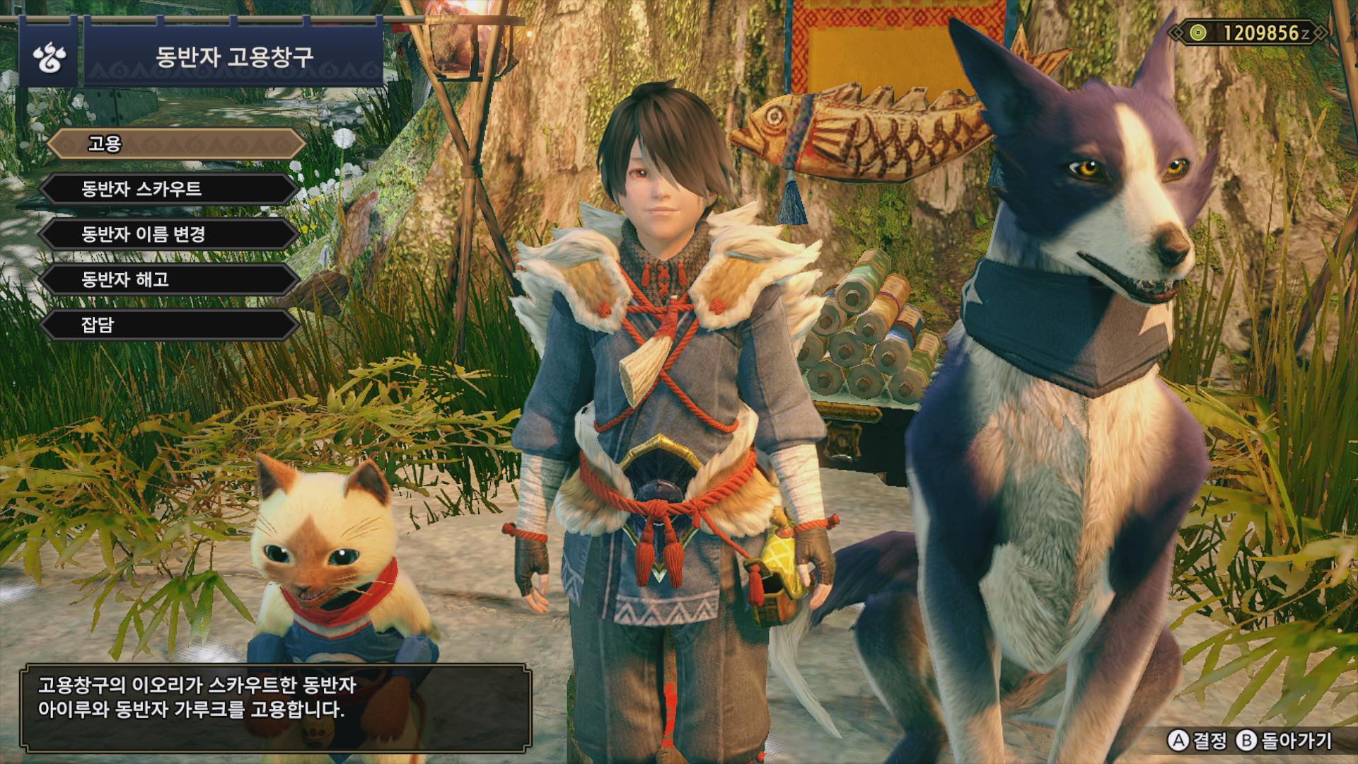 동반자는 아이루(고양이)와 가루크(개)의 두 종류로 나뉩니다