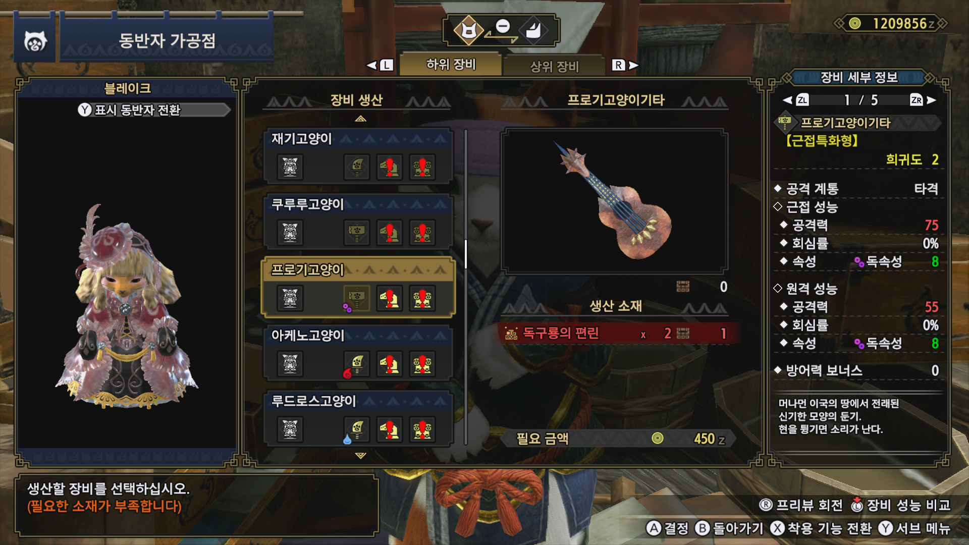 상위에서도 마찬가지로 프로기 - 푸케푸케의 독 무기를 추천하며